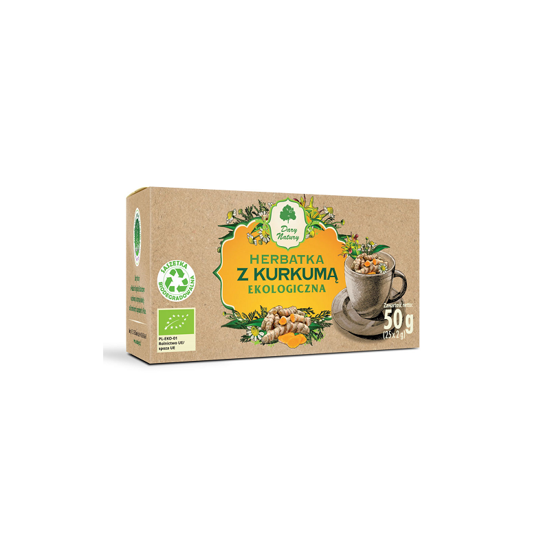 Nasza ekologiczna herbatka kurkumowa to zrównoważone połączenie najwyższej jakości kłącza kurkumy, słodkiej lukrecji, delikatnego rumianku, korzenia mniszka i aromatycznych przypraw. Dodatek czarnego pieprzu wyostrza subtelny smak herbaty, zwiększając jednocześnie wyjątkowe właściwości kurkumy.