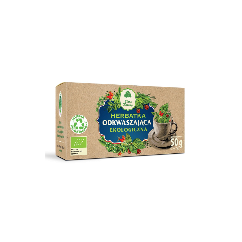 Równowaga kwasowo-zasadowa organizmu odgrywa dużą rolę w utrzymaniu prawidłowej kondycji fizycznej i psychicznej. Wysoko przetworzona dieta współczesnego człowieka oparta jest na silnie zakwaszających produktach ,takich jak mięso (szczególnie wieprzowe), cukrze, słodziku, białej mące kawie. Dodatkowo wysoki poziom stresu zaburzający gospodarkę kwasowo-zasadową organizmu. W oparciu o profesjonalną wiedzę i doświadczenie zielarskie, stworzyliśmy kompozycje ziół o właściwościach alkalizujących organizm. Dzięki połączeniu delikatnej pokrzywy, trawy cytrynowej, podagrycznika, orzeźwiającego owocu róży i innych, aromatycznych składników nasza mieszanka odznacza się nie tylko odkwaszającymi właściwościami, ale i również dobrze smakuje.