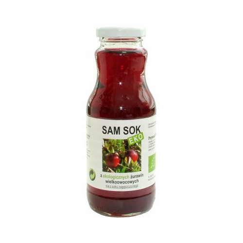 Sok bezpośrednio tłoczony z żurawiny wielkoowocowej. Posiada naturalnie kwaśny i cierpki smak. Produkt pasteryzowany. Osad na dnie butelki jest zjawiskiem naturalnym.