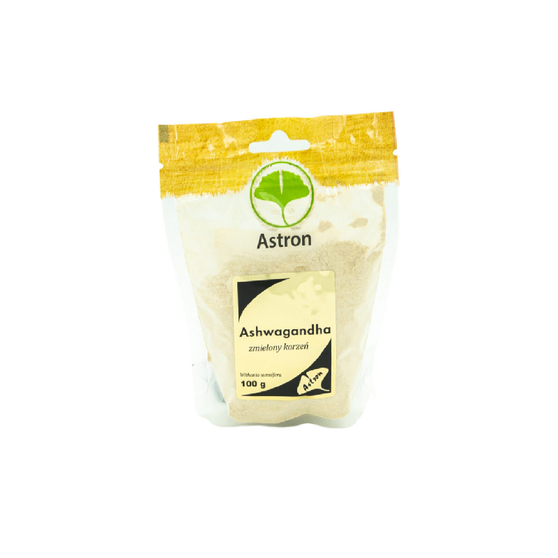 Ashwagandha proszek Astron Zwiększa wydolność psychofizyczną i skraca czas reakcji. Naturalnie wzmacnia wątrobę oraz neutralizuje stres.