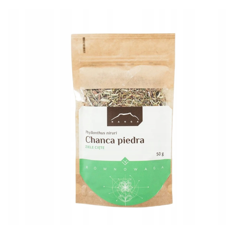 Chanca piedra (Phyllanthus niruri) – niewielka roślina o wielkiej mocy, posiadająca naprzeciwległe, drobne liście. Rośnie dziko w lasach tropikalnych Ameryki Południowej oraz w Chinach i Indiach. Jako surowiec zielarski wykorzystywana jest nadziemna część rośliny. W chanca piedra znajdziemy bogactwo związków bioaktywnych, takich jak: alkaloidy, lignany, flawonoidy, flawonole, terpeny, czy fitosterole. Jej nazwa pochodzi z języka hiszpańskiego i oznacza „łamiąca kamienie”, co nawiązuje do stosowania jej przez rdzenną ludność jako środek oczyszczający nerki i pęcherzyk żółciowy. Roślina ta zdobyła uznanie również w Ajurwedzie i Tradycyjnej Medycynie Chińskiej. Z chanca piedra przygotowuje się napary, które regularnie spożywane wzmacniają układ moczowy i wspomagają jego oczyszczanie.