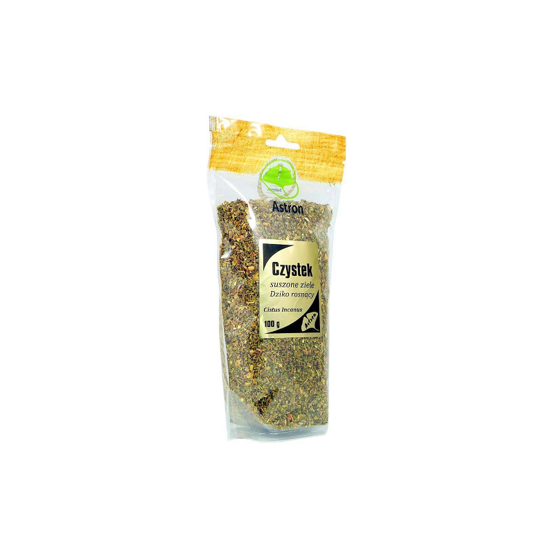 Czystek (Cistus Incanus) – suplement diety. Posiada właściwości antyseptyczne i wzmacniające organizm. Czystek uznawany jest za jedno z najbogatszych źródeł polifenolii – substancji roślinnych o działaniu antyoksydacyjnym i wspierającym układ immunologiczny człowieka, które mogą zapobiegac uszkodzeniom komórek DNA. Pomagają usuwać wolne rodniki. Polifenole przejawiają doskonałe własności antybiotyczne. Działają przeciwzapalnie, przeciw-wirusowo, przeciwbakteryjnie i przeciwgrzybiczo. Zastosowanie: - wzmacnia organizm, - wspiera układ immunologiczny, - pomaga usuwać wolne rodniki z organizmu, Ostrzeżenia dotyczące bezpieczeństwa: Nie stosować u osób uczulonych na liść czystka. Nie należy przekraczać zalecanej dziennej porcji. Suplement diety nie może być stosowany jak substytut (zamiennik) zróżnicowanej diety. Przechowywać w temperaturze pokojowej i w sposób niedostępny dla małych dzieci. Skład: 100 % liści czystka Cistus Incanus Kraj pochodzenia: Turcja Pojemność: 100g