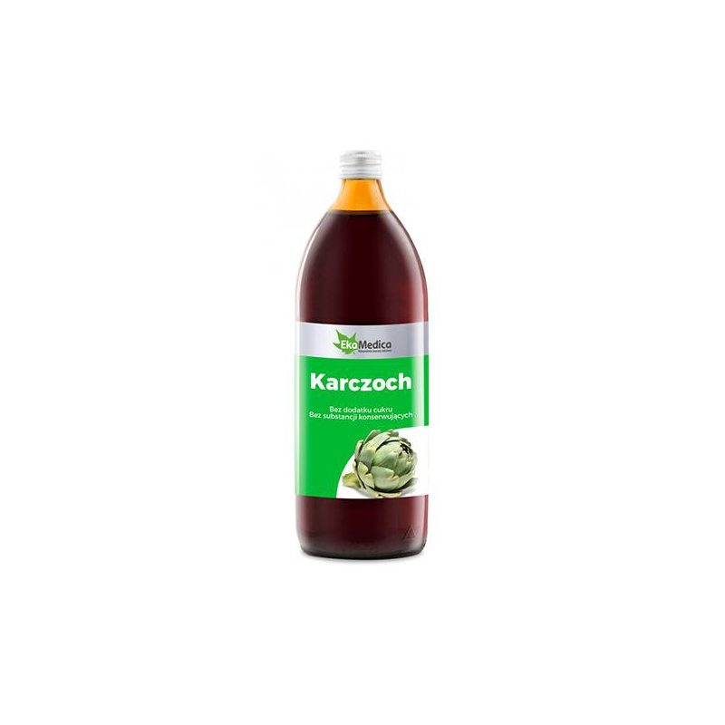 Karczoch - suplement diety w formie płynnej, wyprodukowany z soku 100% ze świeżych liści karczocha Pasteryzowany.