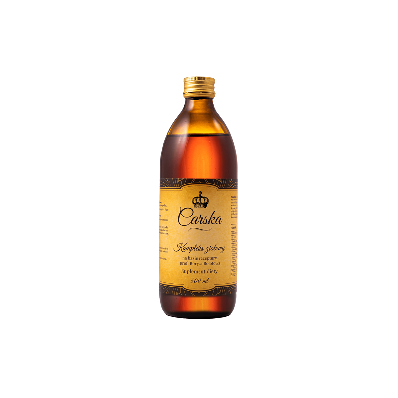 “Wódka Carska” znana jest od ponad 200-300 lat. Wspomagali się nią przy sytych ucztach Carowie Rosji stąd też pochodzi jej nazwa. Skład Carskiej ewoluował przez dziesiątki lat. Najbardziej znany i rozpowszechniony przepis, możemy znaleźć w książce prof. Bołotowa „Zdrowie człowieka w niezdrowym świecie”. Składał się on początkowo z wody, kwasu solnego, kwasu siarkowego, octu winnego i tabletek nitrogliceryny. Jednak po wielu latach odkryto w starych księgach, że skład może różnić się znacznie w zal eżności od potrzeb organizmu. Różnice polegały głównie na doborze ziół. Oferowany produkt oparty jest na bazie pierwotnej receptury.