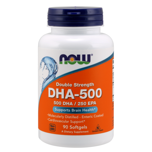 Now Foods DHA-500 to suplement diety wyprodukowany z naturalnych olejów rybich zawierający optymalne proporcje kwasów EPA oraz DHA. Kwasy omega-3 mają działanie przeciwzapalne. Wspomagają także pracę mózgu oraz zwiększają wydolność układu krążeniowego, są niezwykle istotne dla zdrowia serca. Regularna suplementacja EPA i DHA może zapobiegać chorobie niedokrwiennej serca.