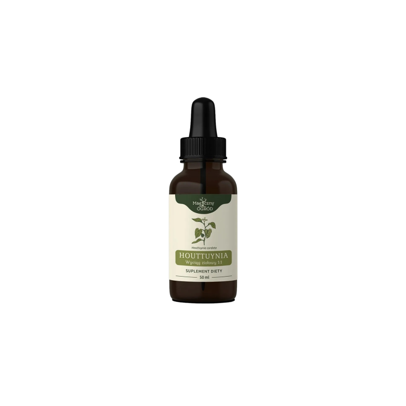 Roślina płożąca, dorastająca do 60 cm wysokości. Posiada liście o sercowatym kształcie i białe kwiaty. Występuje w Azji oraz Chinach. Jako surowiec zielarski wykorzystuje się ziele houttuyni. Najważniejsze substancje aktywne to flawonoidy, indole, kwasy organiczne, sterole, triterpenoidy i olejki lotne. Stosowana w Tradycyjnej Medycynie Indyjskiej, Chińskiej i Japońskiej. Wspiera prawidłową odporność organizmu i wspomaga go w walce z bakteriami oraz wirusami. W wygodnej i dobrze przyswajalnej formie nalewki.