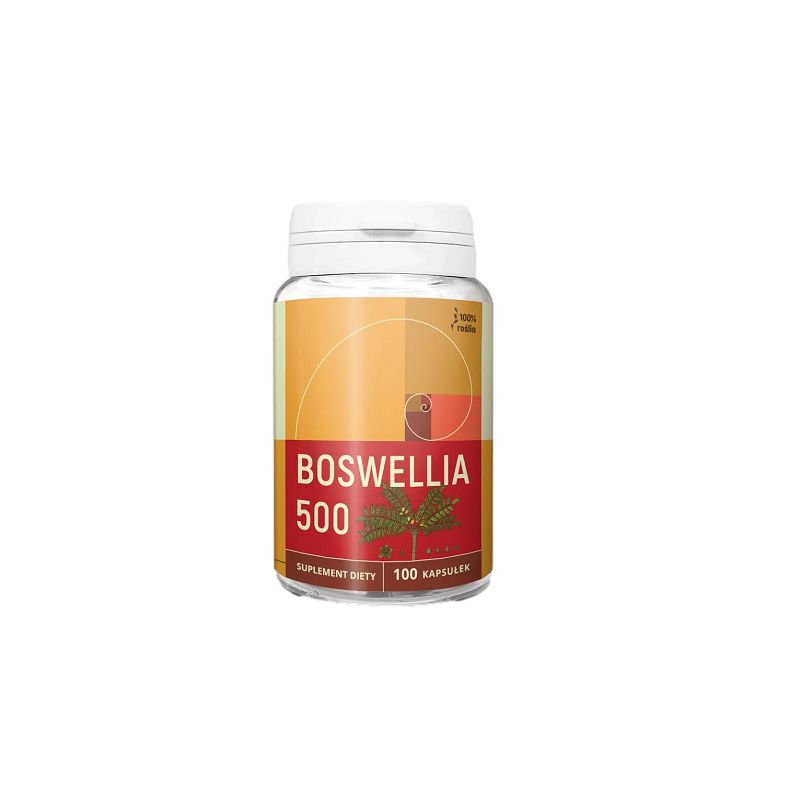 Kapsułki Boswellia 500 – suplement diety stanowiący ekstrakt z żywicy kadzidłowca indyjskiego (Boswellia serrata), zawierający około 60% kwasów bosweliowych.
