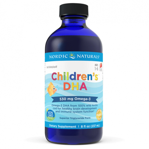 CHILDREN'S DHA 530 mg (KWASY OMEGA-3 EPA DHA DLA DZIECI Z NATURALNYM TRUSKAWKOWYM AROMATEM) 237 ml NORDIC NATURALS - SUPLEMENT DIETY