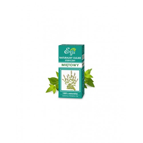 Naturalny olejek uzyskiwany z liści, młodych pędów i kwiatów mięty pieprzowej w procesie destylacji parą wodną. Jego silny zapach działa pobudzająco na organizm. Posiada właściwości przeciwzapalne, przeciwbólowe, antyseptyczne i odświeżające. Wiele właściwości olejku wynika z obecności mentolu, który działa na receptory zimna w skórze, wywierając uczucie chłodu. Łagodzi dolegliwości reumatyczne. Jest szeroko stosowany w leczeniu schorzeń dróg oddechowych i układu trawiennego. Używany w inhalacjach , doskonale działa w przypadku kataru, ułatwiając oddychanie oraz jako środek wykrztuśny eliminuje zaziębienia i kaszel. W masażu olejek jest stosowany przy problemach gastrycznych. Pobudza system trawienny, pomaga przy niestrawnościach i mdłości, a także łagodzi skurcze i kolkę brzuszną. Olejek poprawia samopoczucie, odświeża umysł i ciało, dodaje pewności siebie oraz pomaga w koncentracji. Odstrasza większość owadów. Zwiększa odporność organizmu.