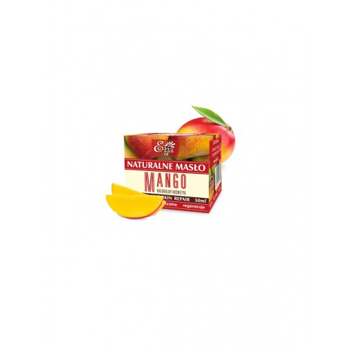 Naturalne, rafinowane o kremowej konsystencji masło kosmetyczne (bez grudek) otrzymywane w procesie tłoczenia pestek owoców mango. Zwiera nasycone i nienasycone kwasy tłuszczowe oraz witaminę A,C i E. Wykazuję silne działanie nawilżające, wygładzające i ujędrniające skórę. Tworzy delikatny filtr na skórze zapobiegając utratę wilgoci oraz chroni przed niekorzystnym wpływem promieni UV. Wspomaga procesy naturalnej odbudowy naskórka. Doskonałe do intensywnej pielęgnacji suchych i zniszczonych włosów włosów, głęboko nawilża i odżywia ich strukturę. Przeznaczone do skóry suchej, dojrzałej i zniszczonej.