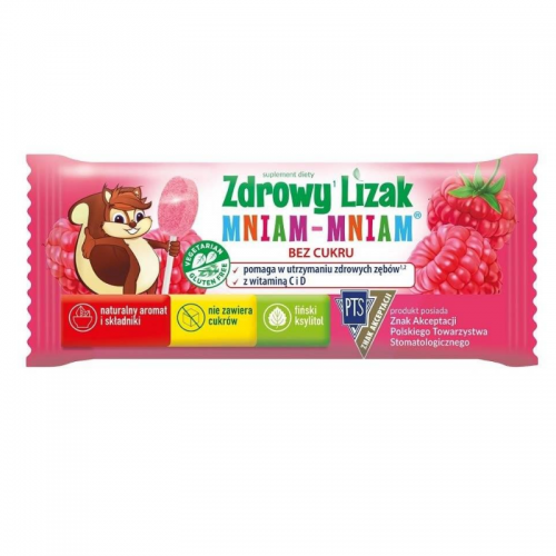 LIZAK O SMAKU MALINOWYM Z WITAMINĄ D I C BEZGLUTENOWY 6 g - MNIAM MNIAM STARPHARMA