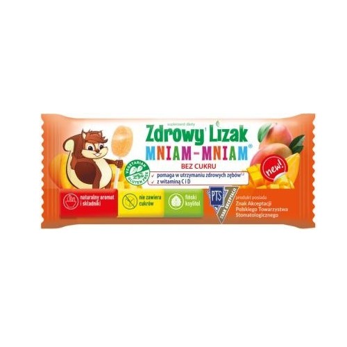 Zdrowa alternatywa lizaków dla dzieci. Nie zawiera cukru, substancją słodzącą jest fiński ksylitol oraz glikozydy stewiolowe. Zawiera witaminy C oraz D. Nie zawiera glutenu i laktozy. Lizak wyróżnia się bogatym aromatem i naturalnymi składnikami.