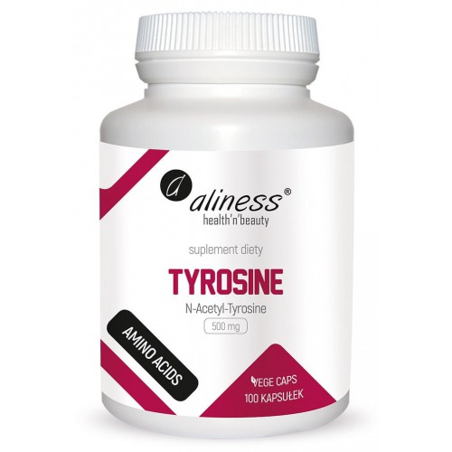 "Wśród działań tyrozyny do najkorzystniejszych zalicza się zwiększenie wydolności organizmu, ograniczenie apetytu i polepszenie zdolności koncentracji. Tyrozyna wspomaga produkcję melaniny w skórze, dzięki czemu ułatwia opalanie i pośrednio chroni przed szkodliwym działaniem słońca. Z tyrozyny syntezowane są neuroprzekaźniki (dopamina i noradrenalina). Dopamina zwiększa koncentrację i odczuwanie przyjemności, powodując ogólny wzrost energii przez dłuższy czas. Noradrenalina zwiększa ciśnienie krwi i powiększa motywację do działania krótkotrwałego. Tyrozyna odgrywa też specyficzną rolę w syntezie hormonów tarczycy. Wspomaga także produkcję melaniny, co korzystnie wpływa na odcień cery i chroni przed zgubnym wpływem promieniowania UV. Oprócz dostępnych na rynku preparatów zawierających tyrozynę możemy znaleźć ją w takich produktach żywnościowych, jak mleko i jego przetwory, (jogurty, sery), produkty sojowe, orzechy, ryby i avocado.''