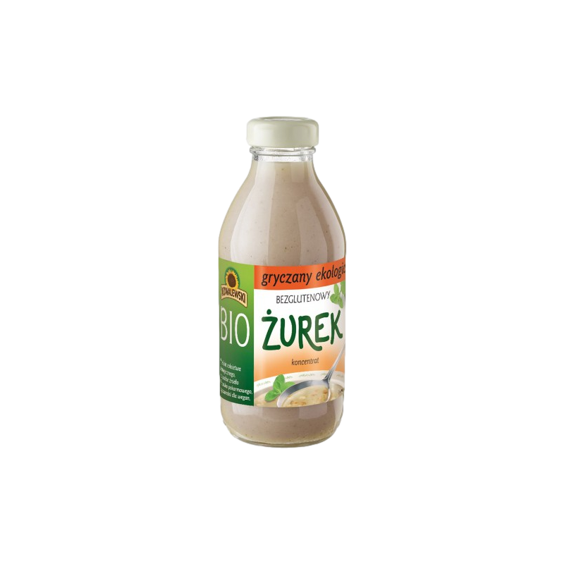 Ekologiczny koncentrat żurku gryczanego jest bezglutenowym produktem rolnictwa ekologicznego przeznaczonym dla konsumentów chcących odżywiać się bezglutenowo. Koncentrat składa się wyłącznie z bezglutenowej mąki gryczanej, wody i soli - składniki te poddawane są naturalnemu kiszeniu. Produkt pasteryzowany.