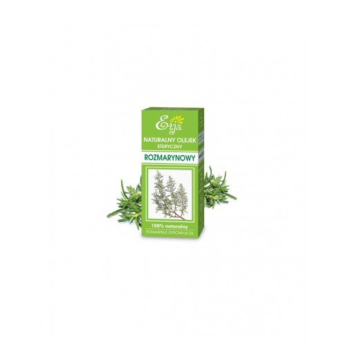 Naturalny olejek otrzymuje się z krzewu rozmarynu. Stymuluje umysł ułatwiając proces myślenia i koncentracji. Przy pielęgnacji skóry i włosów z powodzeniem wykorzystuje się jego właściwości antybakteryjne i przeciwgrzybiczne. Olejek pobudza krążenie, stymuluje pracę serca, reguluje ciśnienie krwi. Ma pozytywne działanie przy zaburzeniach menstruacyjnych, zmniejsza celluliti. Wzmacnia układ immunologiczny. Olejek rozmarynowy jest dobrym środkiem przeciwbólowym. Posiada właściwości rozgrzewające oraz regenerujące, dlatego stosuje się go przy bólach reumatycznych, masażach zmęczonych i sforsowanych mięśni. Jako silny antyseptyk sprawdzi się przy infekcjach dróg oddechowych, kaszlu, a szczególnie przy schorzeniach skóry. Wzmacnia system immunologiczny. Tonizuje i pobudza pracę serca, normuje ciśnienie krwi.