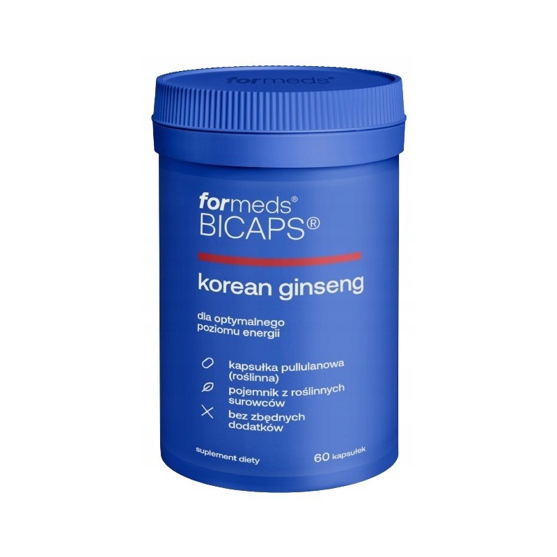 BICAPS korean ginseng zawiera ekstrakt z żeń-szenia koreańskiego standaryzowany na zawartość substancji aktywnych - ginsenozydów. Linia BICAPS to suplementy diety bez zbędnych dodatków zamknięte w pullulanowej kapsułce roślinnej.
