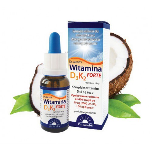 Połączenie bardzo istotnych dla zdrowia witamin. Ich ilość i proporcje są dobrane tak, aby nie tylko prawidłowo przyswajać wapń, ale i aby trafił on w organizmie tam, gdzie powinien, np. do kości, a nie do ścianek naczyń krwionośnych. Produkt łatwoprzyswajalny: witaminy D i K już rozpuszczone w wysokiej jakości, hipoalergicznym oleju MCT z kokosa.