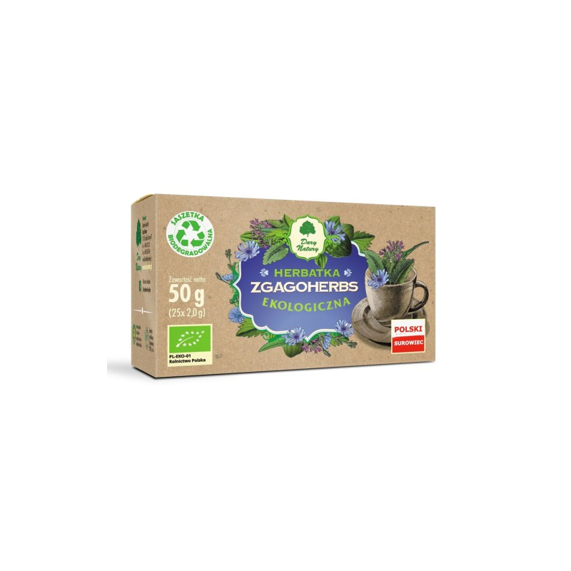 Kompozycja najwyższej jakości starannie wyselekcjonowanych, ekologicznych ziół. Cykoria, krwawnik i rzepik wspomagają trawienie. Mięta przyczynia się do prawidłowego funkcjonowania przewodu pokarmowego i pomaga utrzymać zdrowy żołądek. Bylica pobudza apetyt.