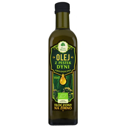 Nasz olej tłoczony jest na zimno z nasion dyni pochodzących z Polskich ekologicznych gospodarstw rolnych. Olej ten jest bardzo bogaty w witaminy E a także C, A, D i B. Według literatury zielarskiej ze względu na swoje właściwości jest szczególnie cenny w profilaktyce chorób prostaty oraz chorób układu ruchu jak również zwalnia procesy starzenia się organizmu. Ma przyjemny smak i zapach, dobrze komponuje się z ziemniakami, kaszami, sałatkami, surówkami, rybami.