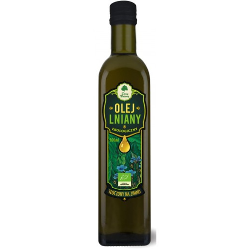 Smaczny olej wytłoczony z nasion lnu pochodzących z gospodarstwa ekologicznego. Jest doskonałym i bardzo zdrowym składnikiem codziennej diety. Jak podaje literatura zielarska nasiona lnu są bogate w nienasycone kwasy tłuszczowe oraz witaminę E. Olej z nasion lnu może być używany do sałatek oraz surówek, ryb, kasz, ziemniaków, serów oraz wszelkich innych potraw. Zewnętrznie polecany jako dobry środek przy suchości skóry, alergiach skórnych, oparzeniach, odleżynach oraz zaczerwienieniach.