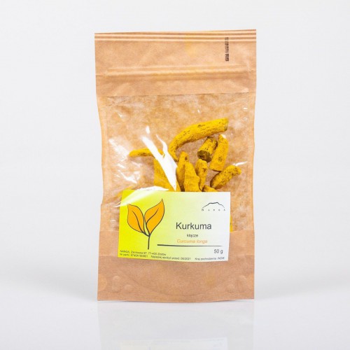 Kurkuma (Curcuma longa) – zwana ostryżem długim lub indyjskim, jest to roślina należąca do rodziny imbirowatych o charakterystycznym, żółtym korzeniu i jasnych, kłosowatych kwiatach. Pochodzi z południowej Azji i jest szczególnie powszechna w Indiach. Jej podziemne kłącze stanowi cenny surowiec stosowany od tysięcy lat zarówno w kuchni, jak i w medycynie tradycyjnej. Głównymi substancjami aktywnymi kurkumy są kurkumina i jej pochodne, których korzystny wpływ na zdrowie został udokumentowany licznymi badaniami. Obok nich obecne są także kwasy organiczne, olejki eteryczne oraz żywice. Kurkuma to jedna z najważniejszych przypraw Dalekiego Wschodu, nadająca potrawom złocistą barwę i orientalny, wyrazisty smak. Ponadto Curcuma longa pozytywnie wpływa na trawienie, spowalnia starzenie się komórek, usprawnia procesy poznawcze oraz dba o korzystny poziom cholesterolu we krwi. Walory smakowe i zdrowotne sprawiają, że warto włączyć ją do codziennej diety. Kurkuma świetnie sprawdzi się jako dodatek do ryżu, sosów, warzyw, potraw typu curry, a także do dań na słodko. Ostra papryka, pieprz oraz oliwa wielokrotnie zwiększają przyswajalność substancji aktywnych kurkumy.