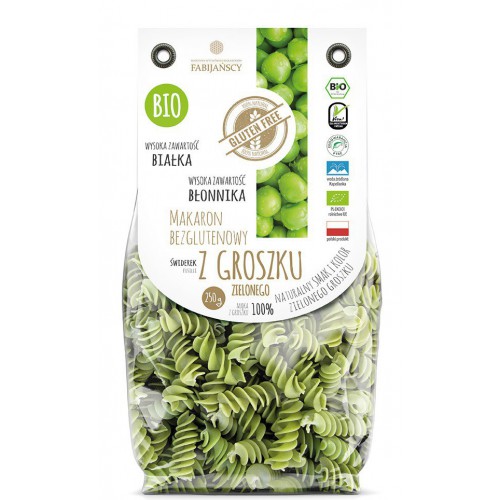 Makaron z groszku zielonego świderki Fusilli bez glutenu BIO 250g Fabijańscy